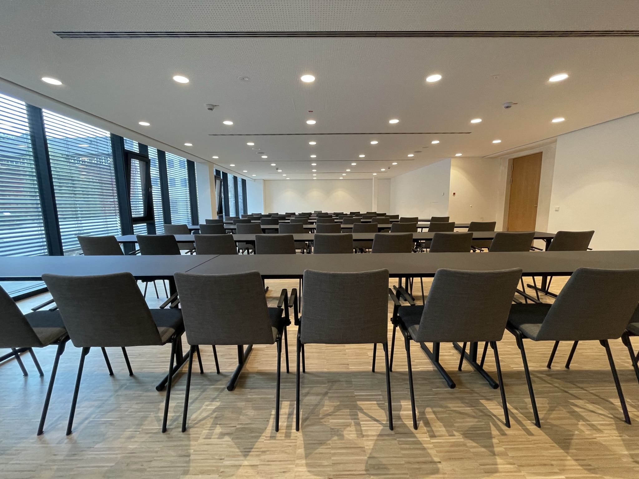 Der moderne Tagungsraum umfasst eine Fläche von 135 m² und schafft dank seiner technischen Ausstattung einen abgerundeten Moment für Firmen- & Business Events, Vorträge oder Tagungen, Get-Together & Betriebsversamm-lungen.
